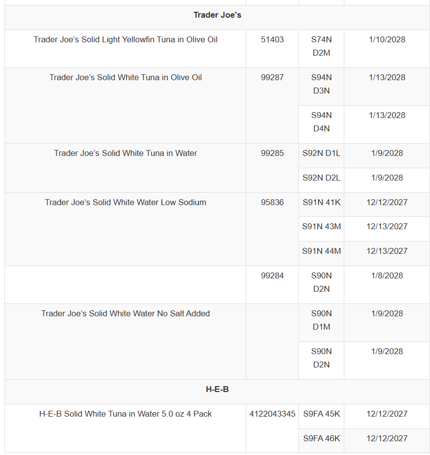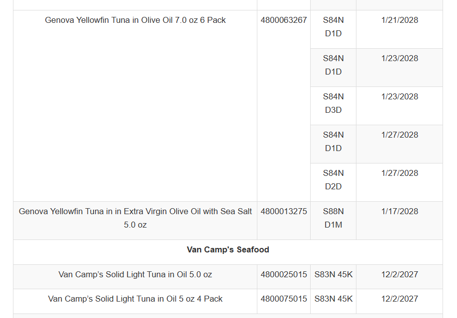Tri-Union Seafoods advises that consumers in possession of any product with the below Lot Codes should dispose of the product. Below is a list of specific Lots impacted: