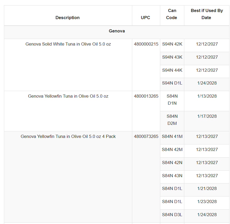 Tri-Union Seafoods has made the decision to voluntarily recall select lots of canned tuna products sold under the Genova®, Van Camp’s®, H-E-B and Trader Joe’s brand names. This voluntary recall is out of an abundance of caution following the notification from our supplier that the “easy open” pull tab can lid on limited products encountered a manufacturing defect that may compromise the integrity of the product seal (especially over time), causing it to leak, or worse, be contaminated with clostridium botulinum, a potentially fatal form of food poisoning. Consumers are warned not to use the product even if it does not look or smell spoiled. Consumers feeling unwell should seek immediate medical attention. No illnesses associated with the recalled products have been reported and the recall is being conducted to ensure consumer safety.